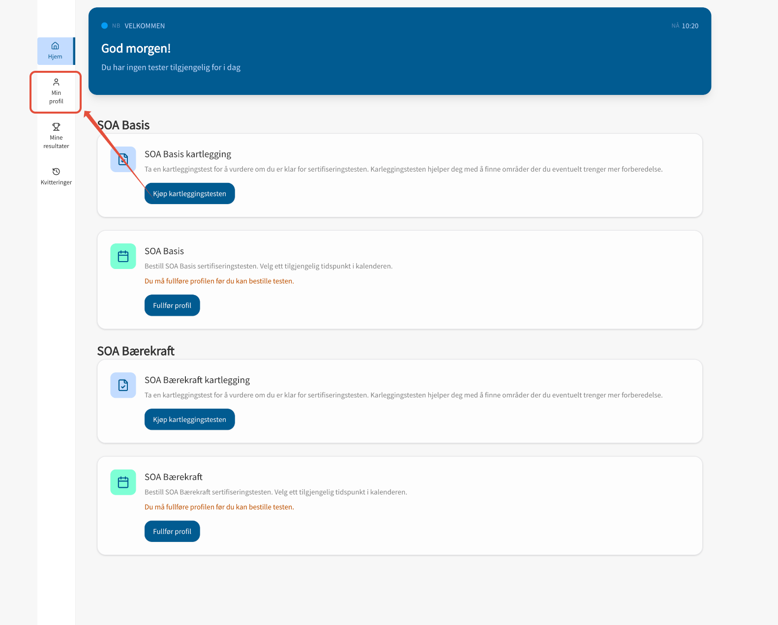 Du kan verifisere profilen din med mobilnummer, eller e-post, og deretter få overført all historikk fra Norsk Test over på brukeren din.